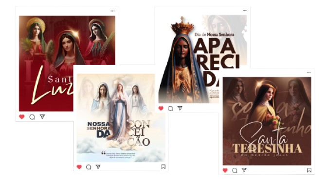 - Ícones/ilustrações (São Jorge, Santo Antônio, N. Sra. Aparecida, Santa Rita…)